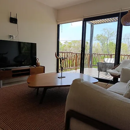 Disfruta de tus vacaciones en Tulum en Casa Las Flores Tulum, un apartamento de 340 m^2. Ideal para quienes buscan una experiencia auténtica, está situado a 5 minutos a pie del centro de kitesurf ProKiteTulum y a una distancia de 4 km del Centro Ecológico Sian Ka'an. Este apartamento ofrece vistas al mar y cuenta con una terraza.