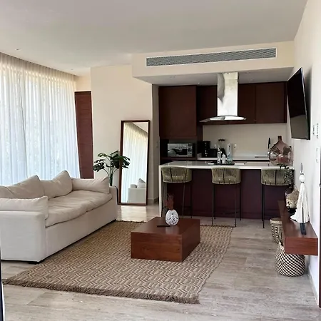 El apartamento está ubicado en el distrito Hotelera, a unos 15 minutos en coche de la Zona Arqueológica de Tulum.